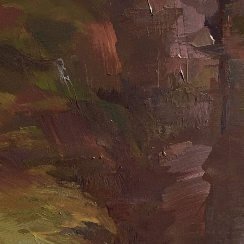 Ég ELSKA þennan foss - ég elska hvernig kraftmikið vatnið hverfur inn á milli dökkra klettana. Í þetta skiptið heimsótti ég fossinn í týpísku íslensku veðri, með þungbúnum skýjum en við það naut fossinn sín bara enn meira í landslaginu. Ég gerði lítil plein air málverk á staðnum, eða litaskissur eins og ég kalla það oft, og nýtti þær til að fullgera málverkið heima á vinnustofunni.