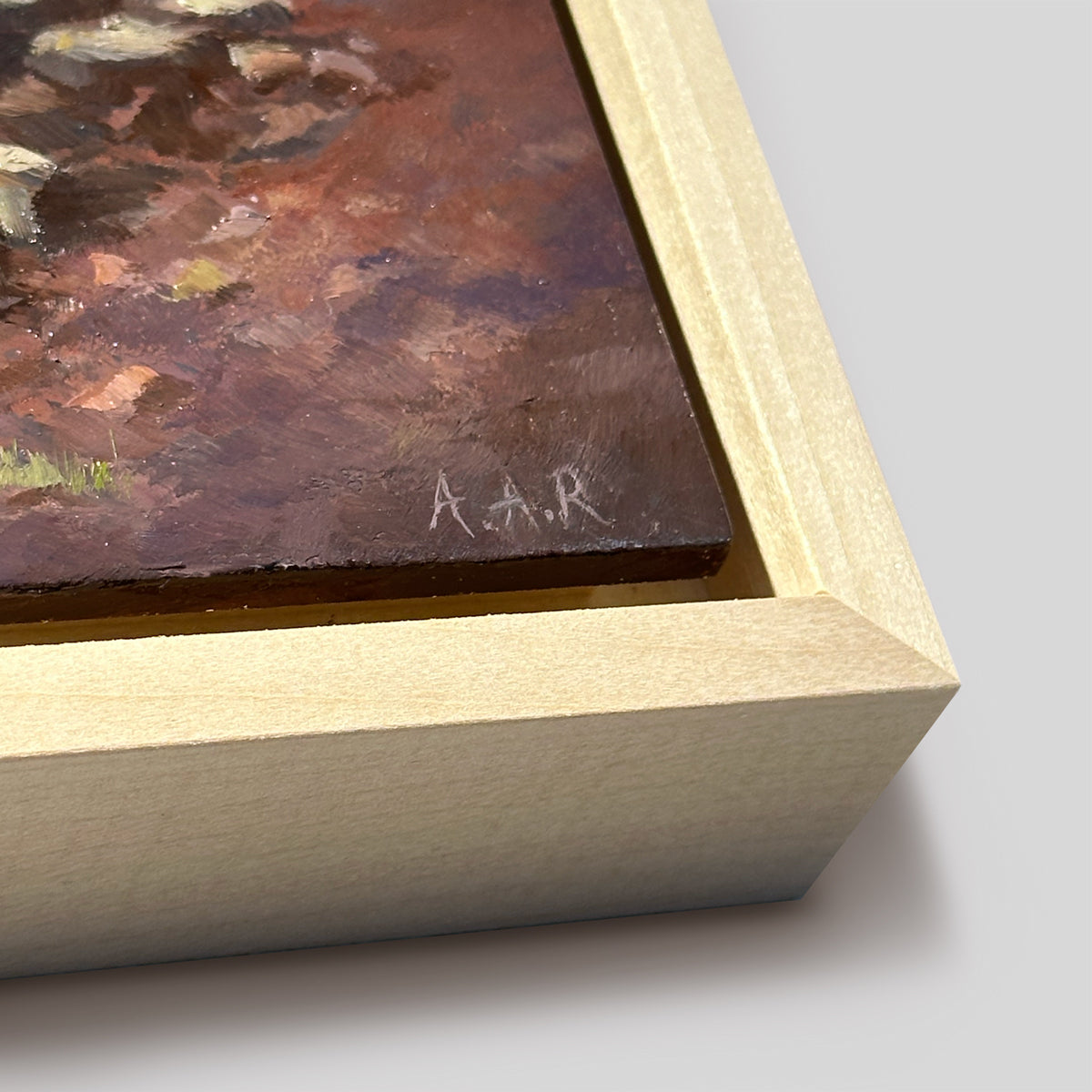 Þetta málverk er innrammað og tilbúið til að hengja upp heima hjá þér.